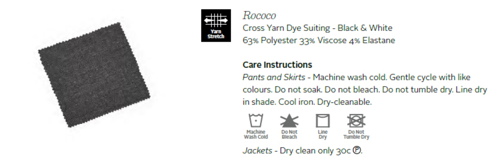 BIZ Rococo & Comfort Wool Stretch Style Specifications
